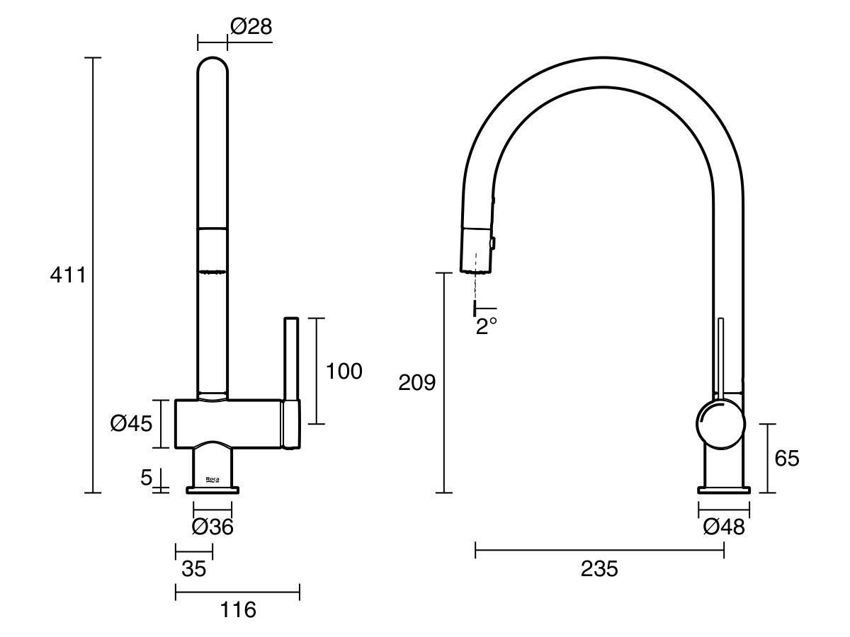 The Roca Ona Bathroom Collection pays homage to its Spanish heritage and the diverse nature of its native Mediterranean landscape. The Roca Ona Pull Out Sink Mixer heroes the very best of European design with its minimalist and streamline cylindrical body and elongated pin lever design, giving comfort to everyday handling. With a traditional flow and vege-spray functionalities the Pull Out design improves functionality in the kitchen and laundry. Available in Chrome, Matte Black, Matte White, Brushed Brass and Brushed Nickel.